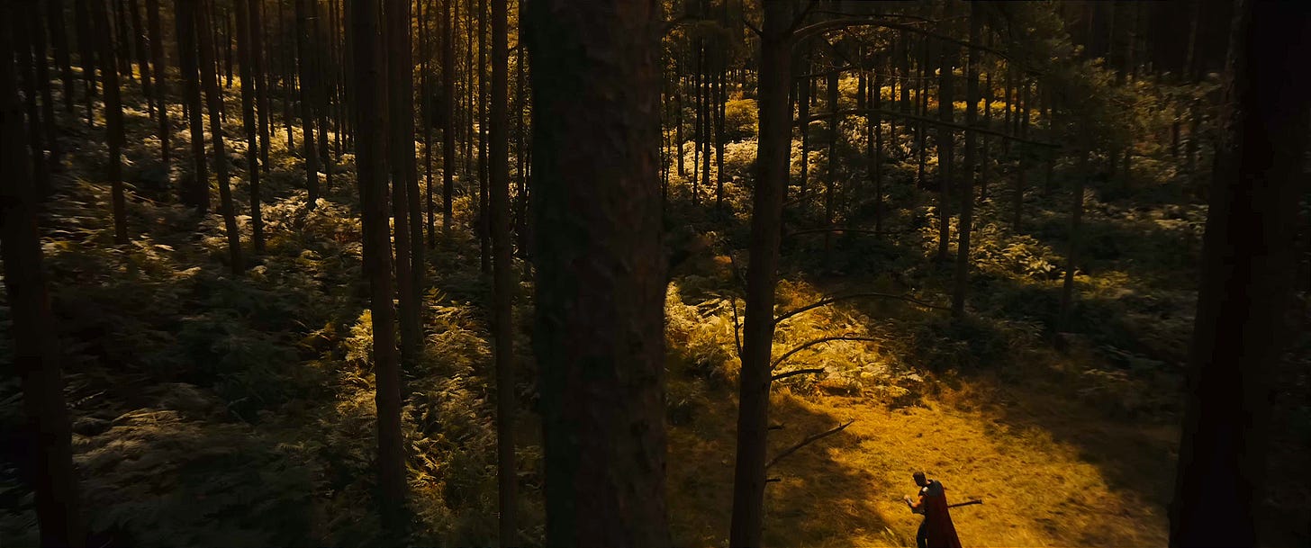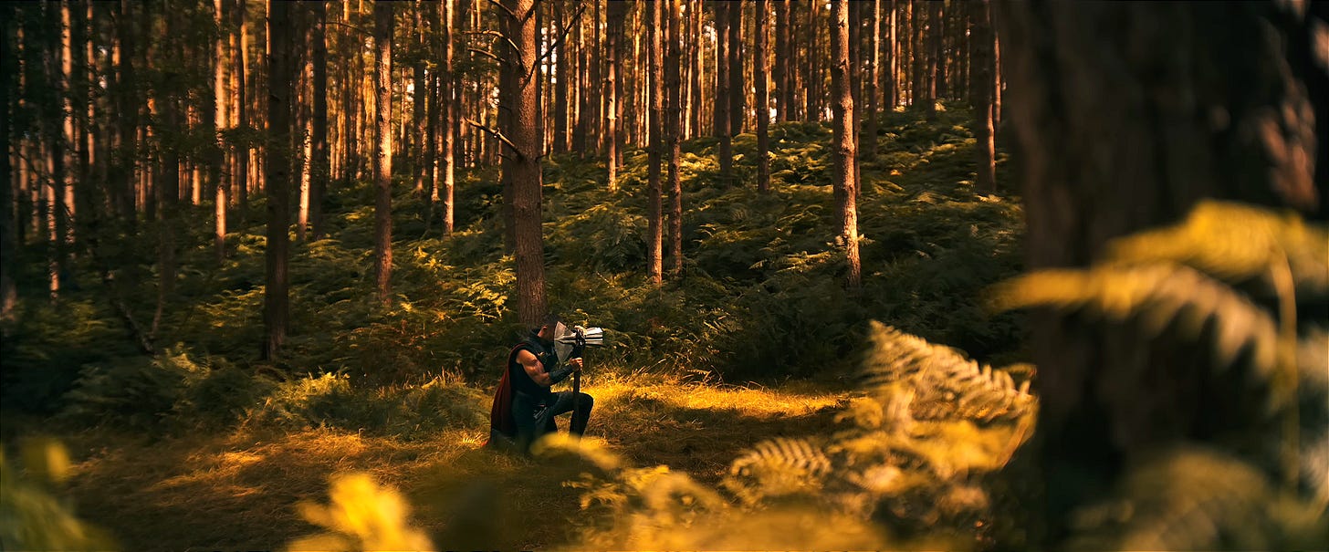 We see Chris Hemsworth, back in fighting form, kneeling in the middle of a forest with Stormbreaker in hand as he prays to the spirit of his father, Odin. He asks him for strength to defeat a new villain. But this time, the request comes with a level of humility we’ve rarely, if ever, seen from the God of Thunder. Dare we say, Thor has finally grown up… or at least reached the level of wisdom once held by his father.