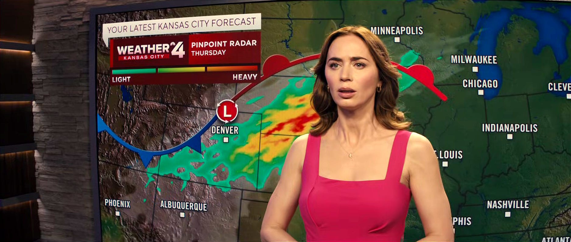 Blunt plays a weather woman who uncovers a world-changing secret and must decide whether to reveal it to the world in Spielberg’s star-studded sci-fi mystery.