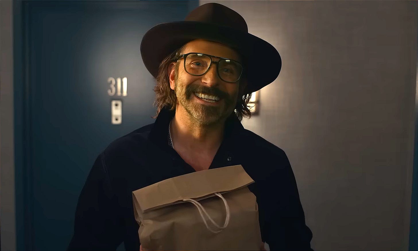 Aside from his directing, producing, and co-writing duties, Bradley Cooper also co-stars in the upcoming film as Arnie, Alex’s best friend. And in a perfect touch, he looks like a real tool—decked out in a cowboy hat, oversized glasses, and a horseshoe mustache. Cooper clearly seems to be having fun here, especially after a year of only making a couple of surprise guest appearances in projects like Abbott Elementary (playing himself), The Righteous Gemstones (as the very first Gemstone), and even Superman (as the Man of Steel’s Kryptonian father).