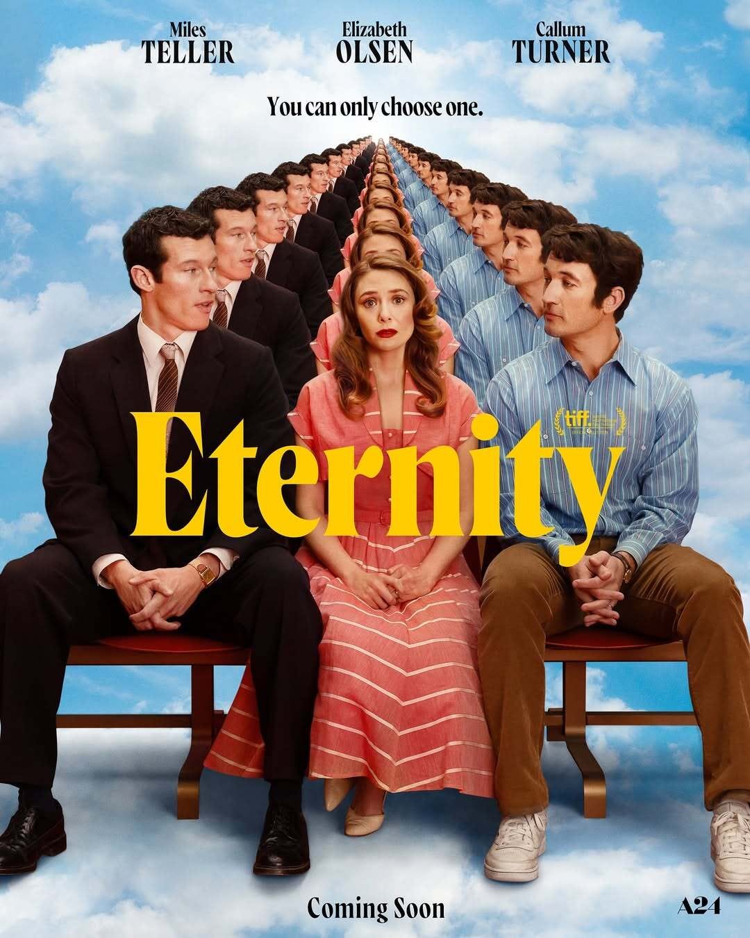 Set in a celestial waiting room where souls have seven days to decide their eternal fate, the film follows Joan (Elizabeth Olsen), who’s torn between two great loves: her steadfast husband Larry (Miles Teller) and Luke (Callum Turner), a soldier who passed away too soon and has been waiting for her. As old flames reignite and old wounds resurface, Joan, Larry, and Luke face an existential crisis that makes eternity feel like a really long couples therapy session.