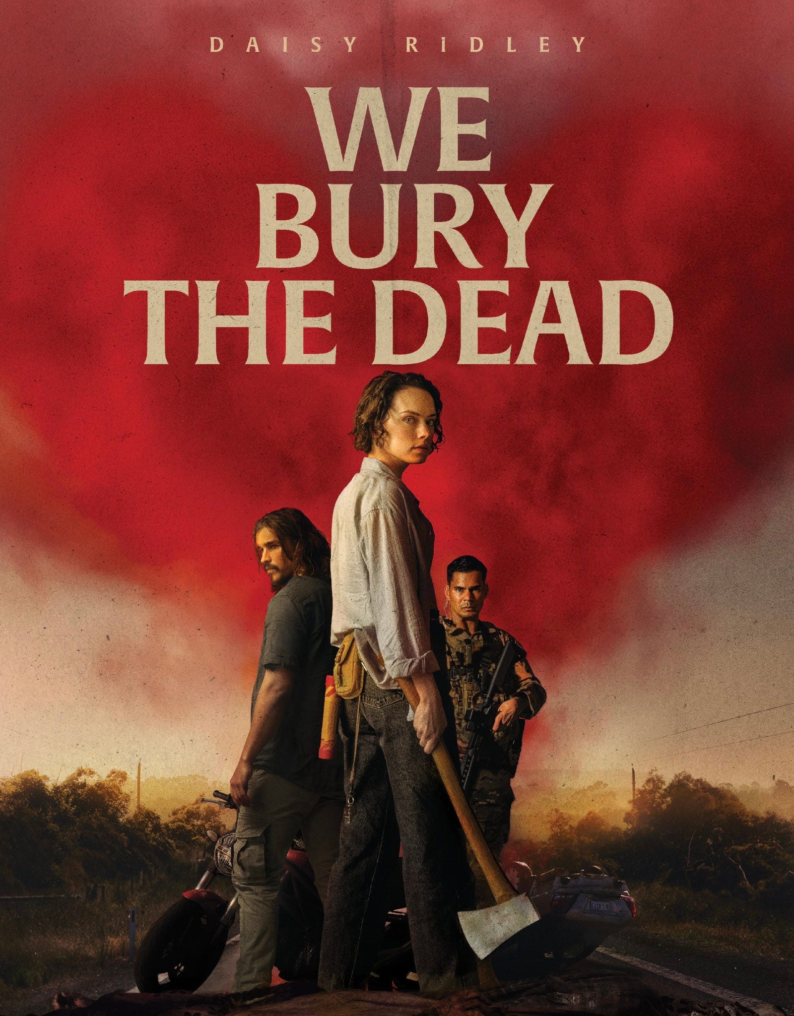 In the upcoming horror thriller We Bury the Dead, Ridley stars as Ava Newman, a woman hunting for her missing husband across a scarred, shell-shocked Australia. The country is unraveling under the weight of a strange new pandemic — one triggered by a secretive military bombing experiment gone nightmarishly wrong. Determined to find answers, Ava signs on with a grim body-retrieval unit assigned to clean up the innocent casualties. But while on her mission, she discovers something far more disturbing: some of the dead are getting back up.