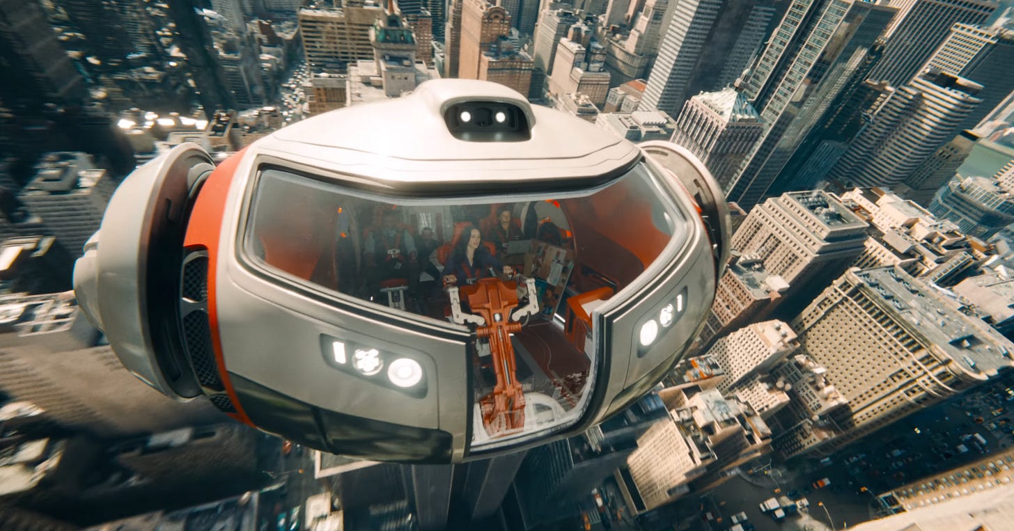 The film also stars Rachel Brosnahan as intrepid Daily Planet reporter Lois Lane. In the trailer, we see her piloting an orb-shaped spacecraft through downtown Metropolis, as she hollers “Buckle up!” to Perry White (Wendell Pierce), Jimmy Olsen (Skyler Gisondo), and other Daily Planet co-workers. Well, that’s one way to beat the traffic!