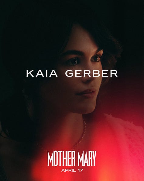 Co-starring Hunter Schafer, FKA twigs, Kaia Gerber, Atheena Frizzell, and Jessica Brown Findlay, Mother Mary opens in select theaters April 17th before expanding wide on April 24th.